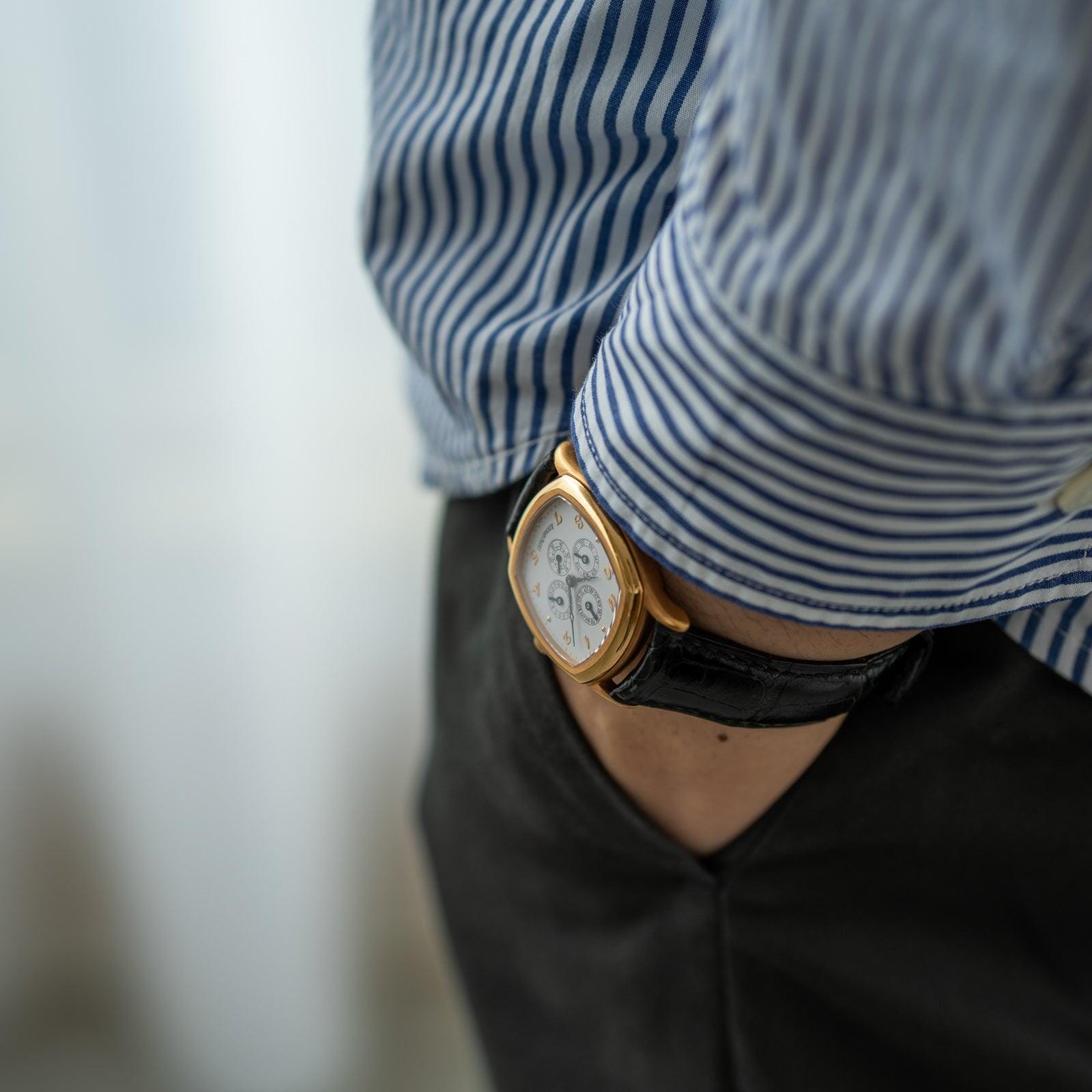 クッションケースにトリプルカレンダーという非常に珍しい時計です。
