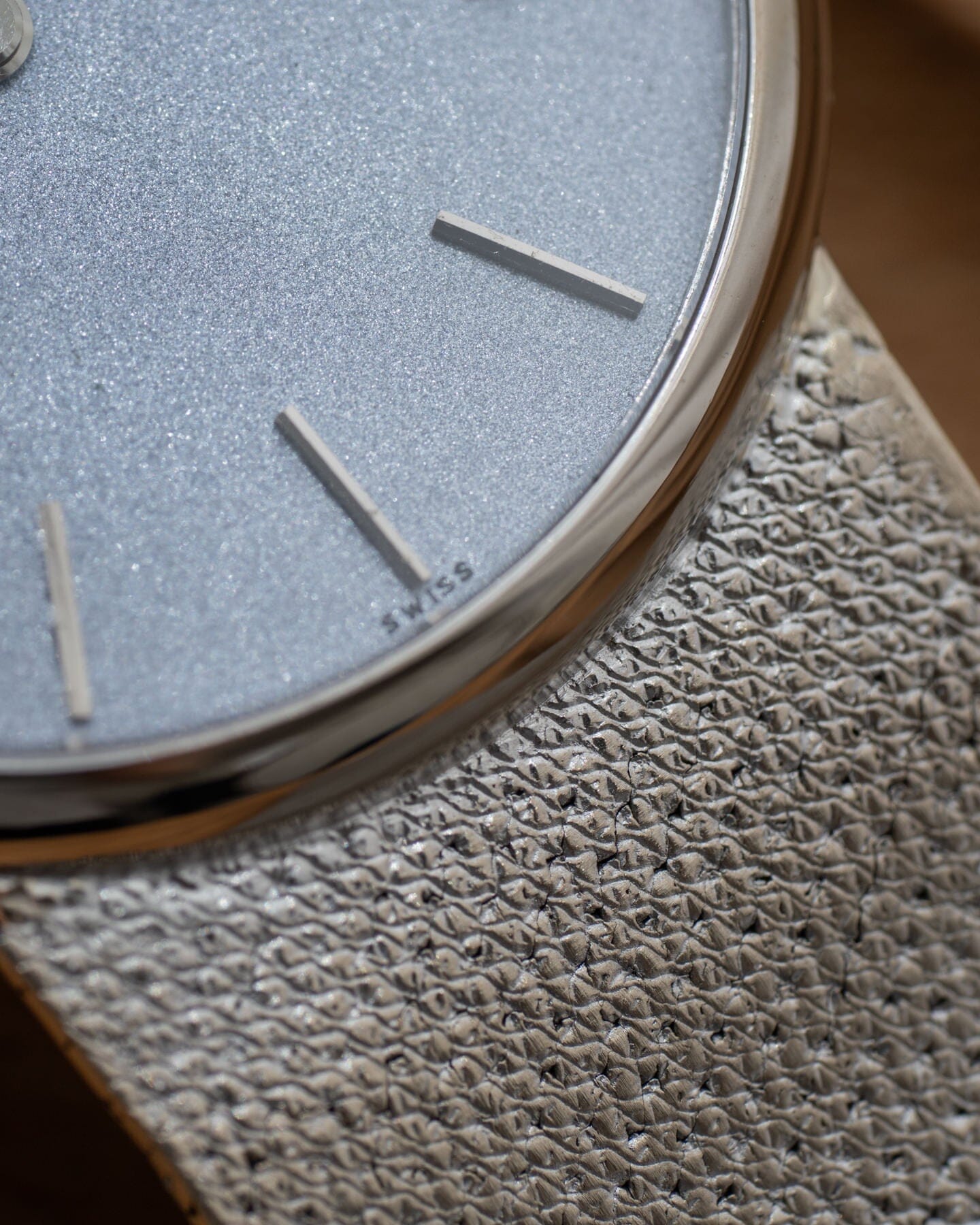It is a very interesting dial that, depending on the angle, can be seen shimmering like a sandy beach.
