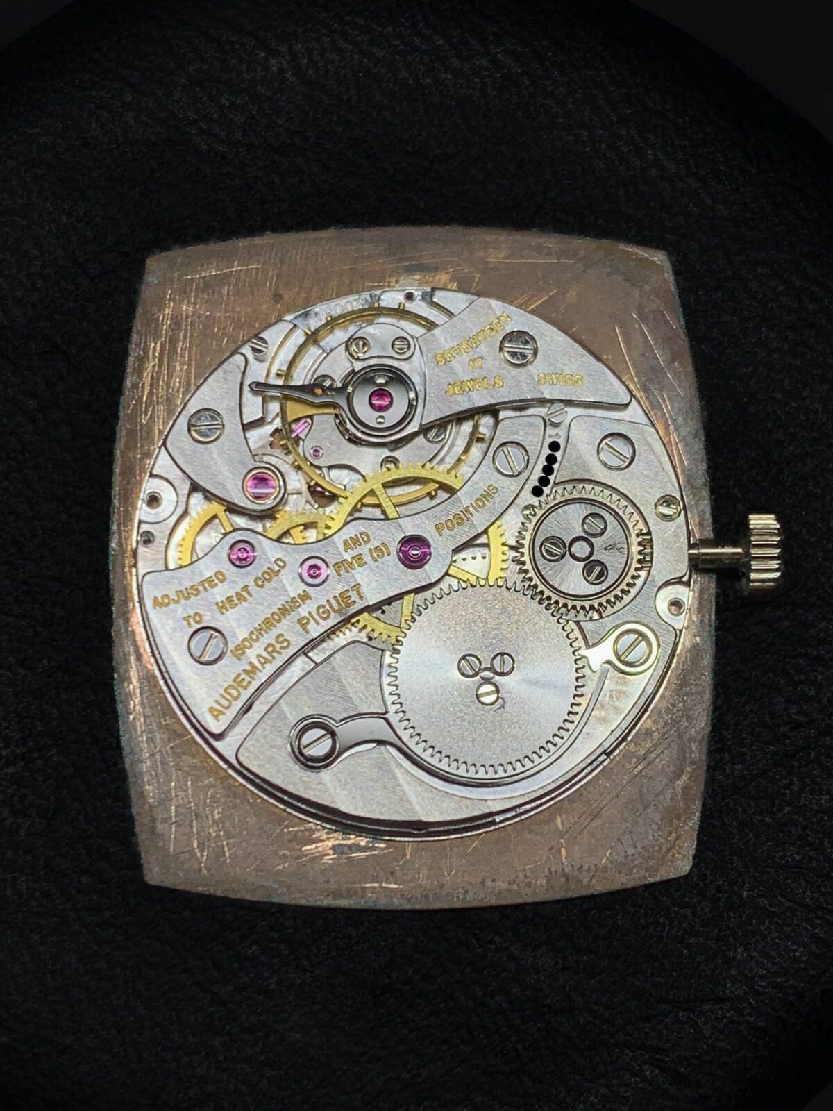 The rounded Audemars Piguet font is also a unique vintage feature, and the notation at 6 o'clock is unusual.