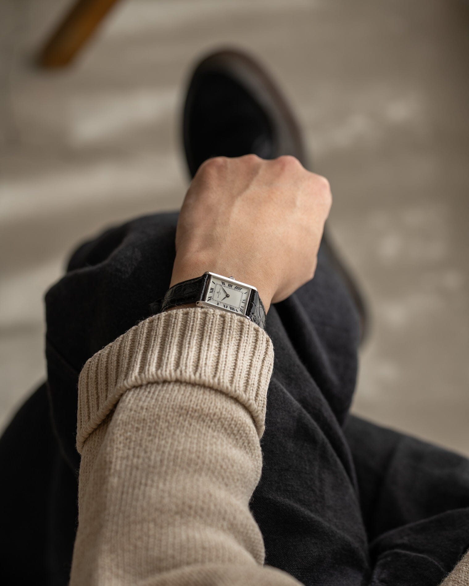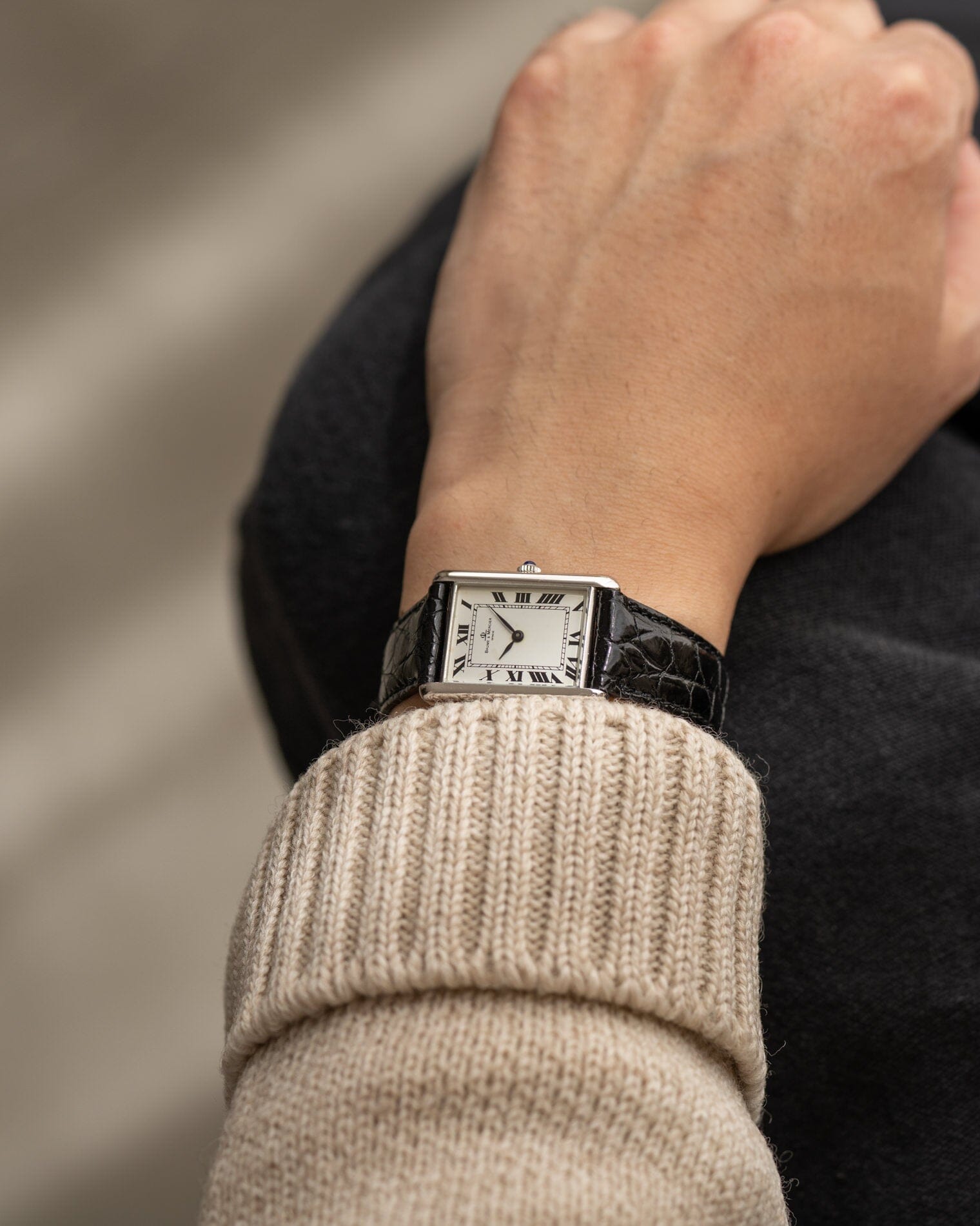 The case size is 23.4mm in width and 31.4mm in height, which is close to the mens size of a vintage tank. I feel that the structure with round lugs is also very similar to them.