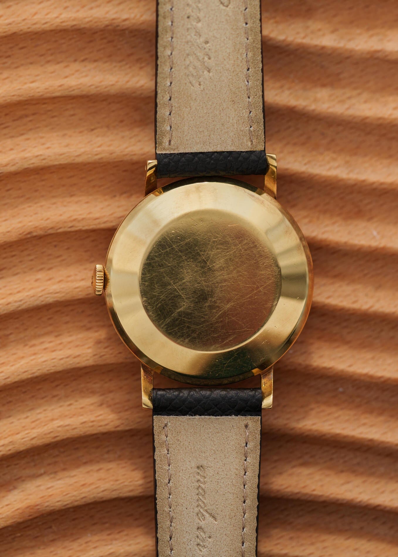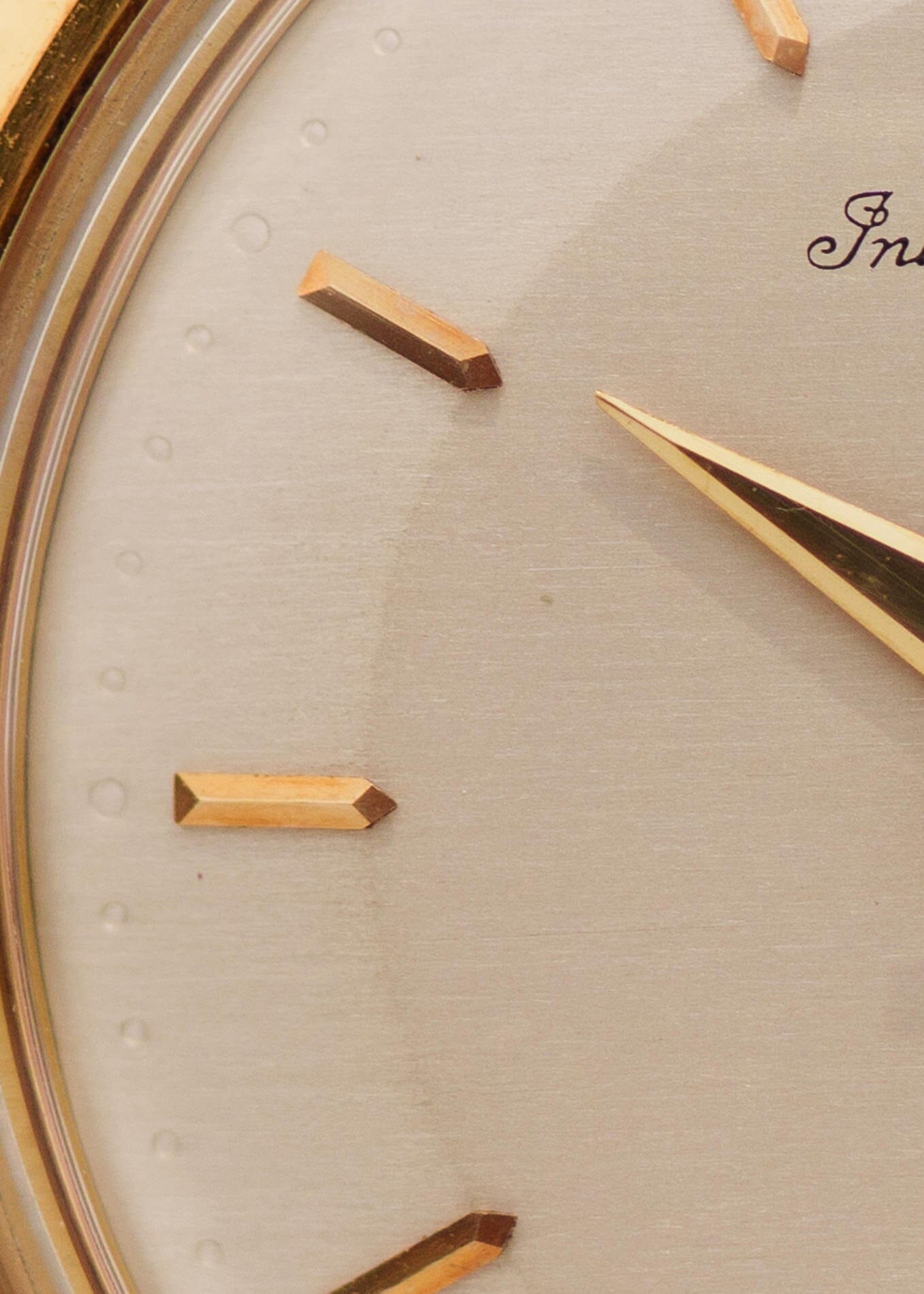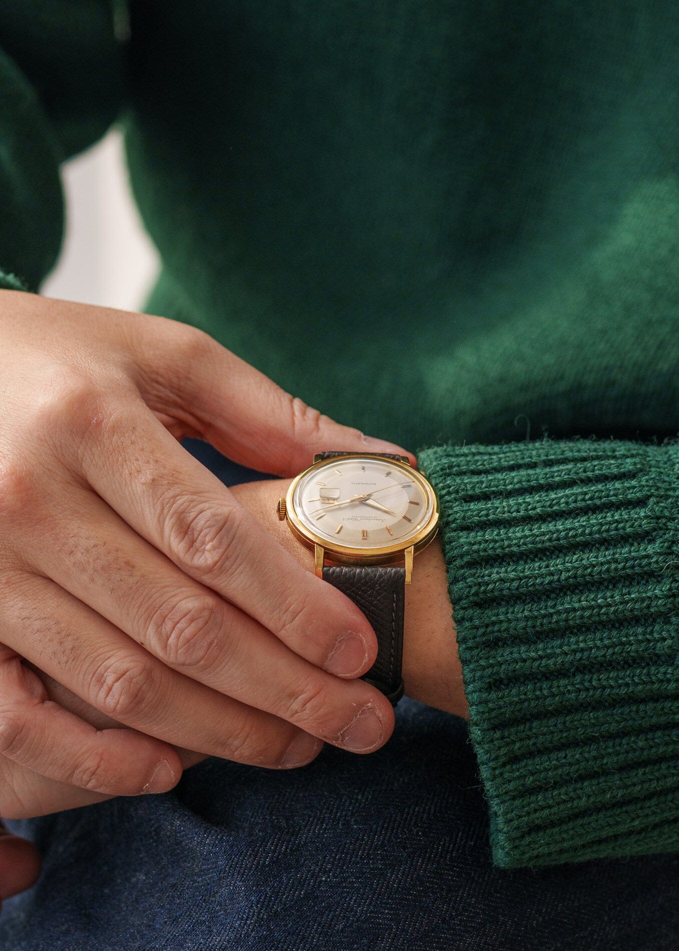 This watch is a self-winding round watch from the 1960s with a water-resistant case made of 18K yellow gold, a characteristic of IWC.