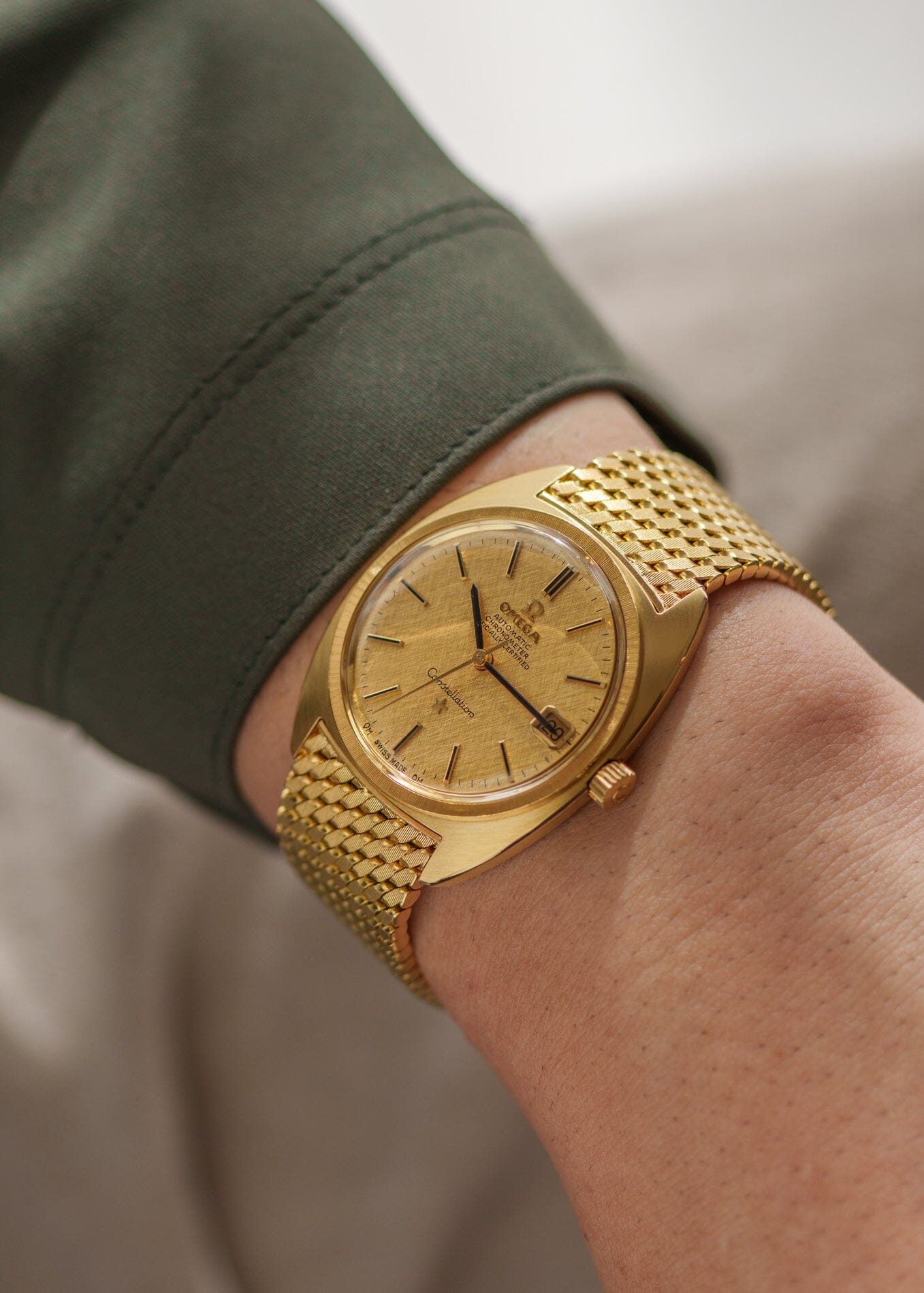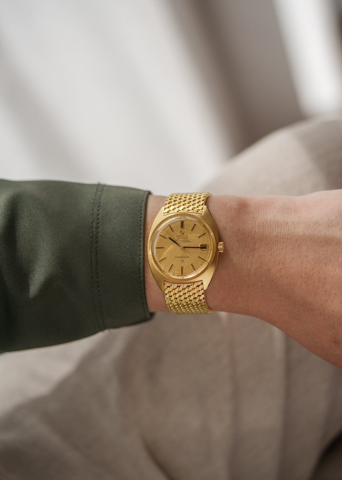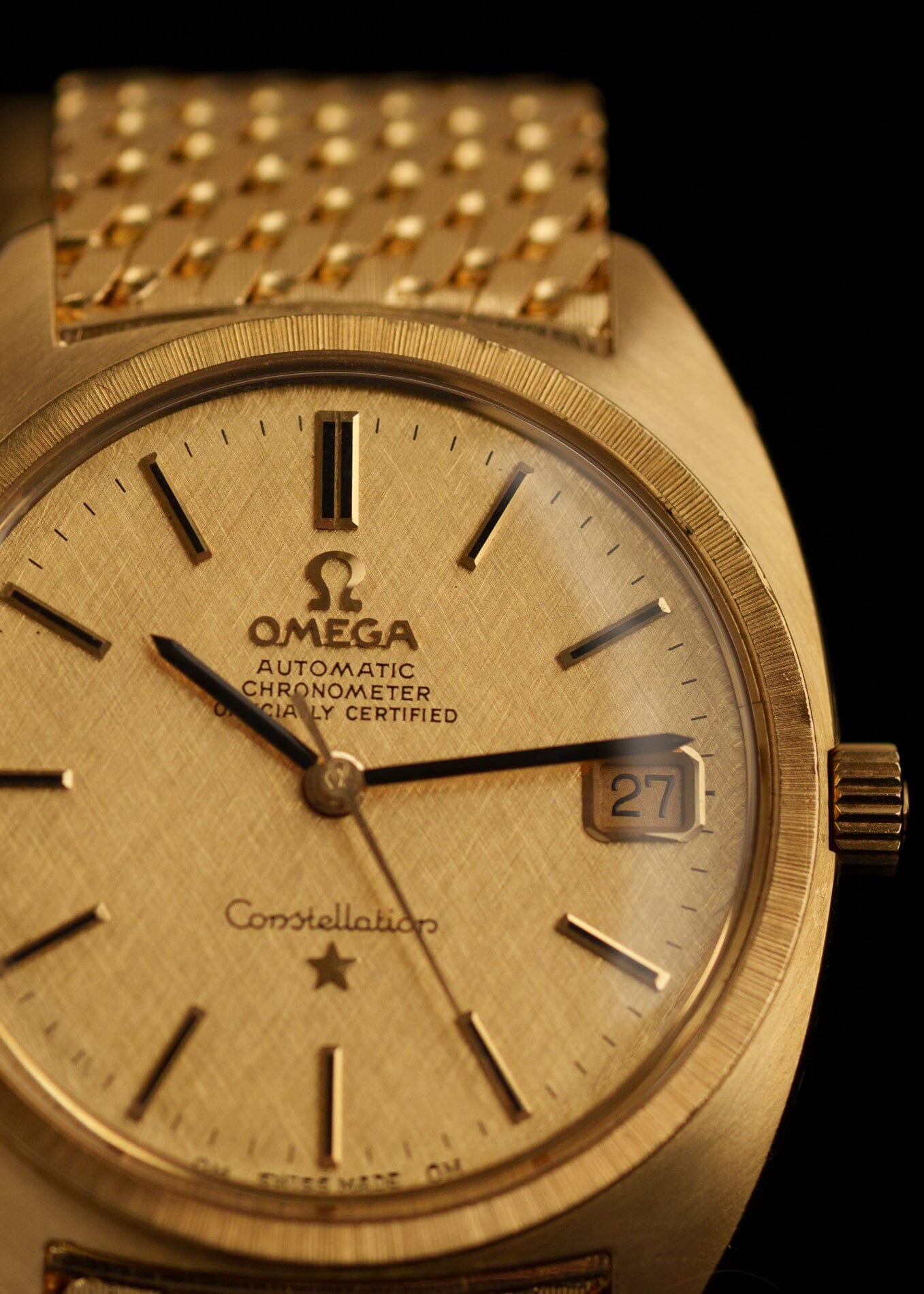 18K yellow gold Constellation watches are not particularly rare, but they are much less common when they come with genuine 18K bracelet. In addition, the case, dial, movement, and bracelet are all in excellent condition, which makes this watch a great value.