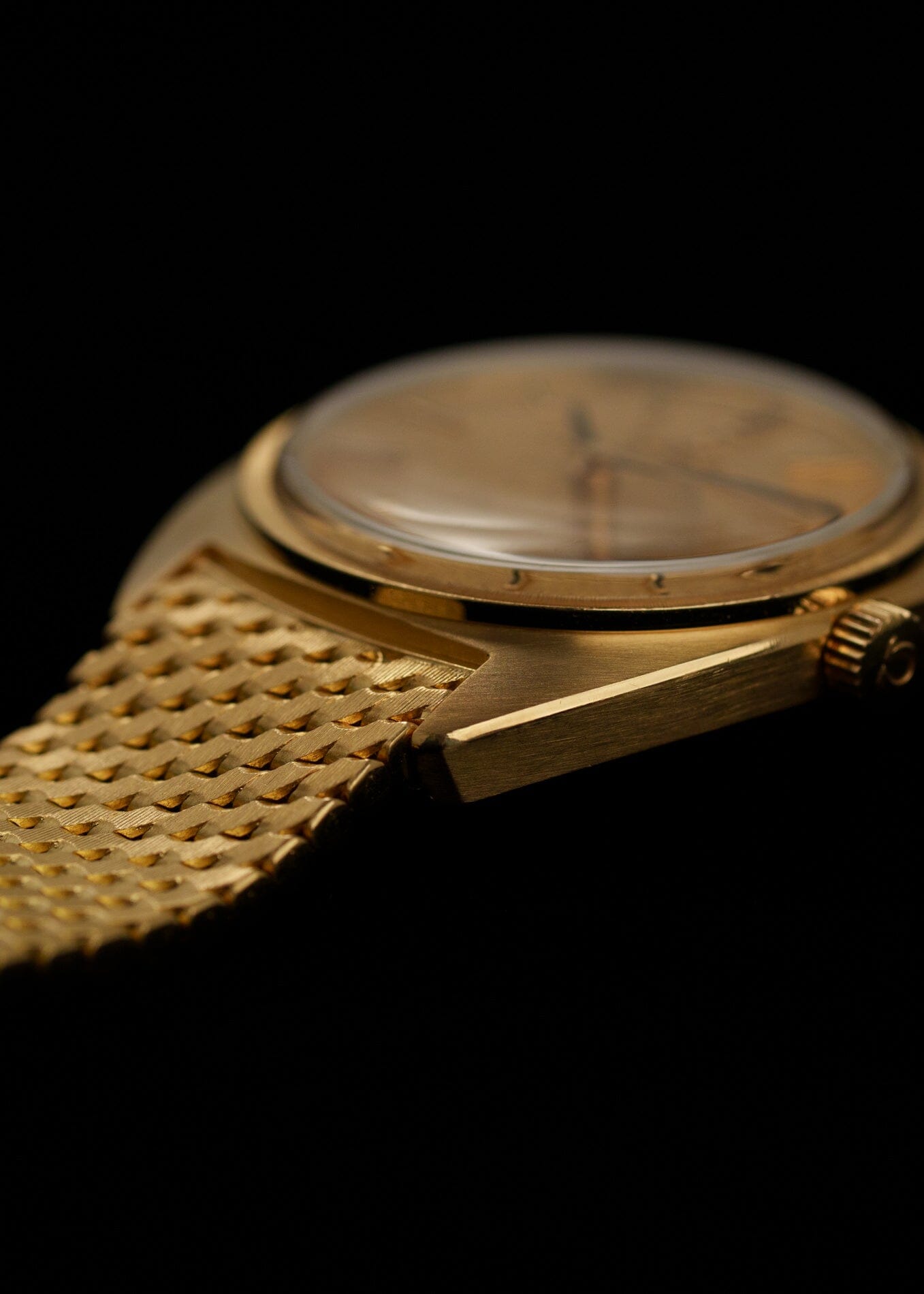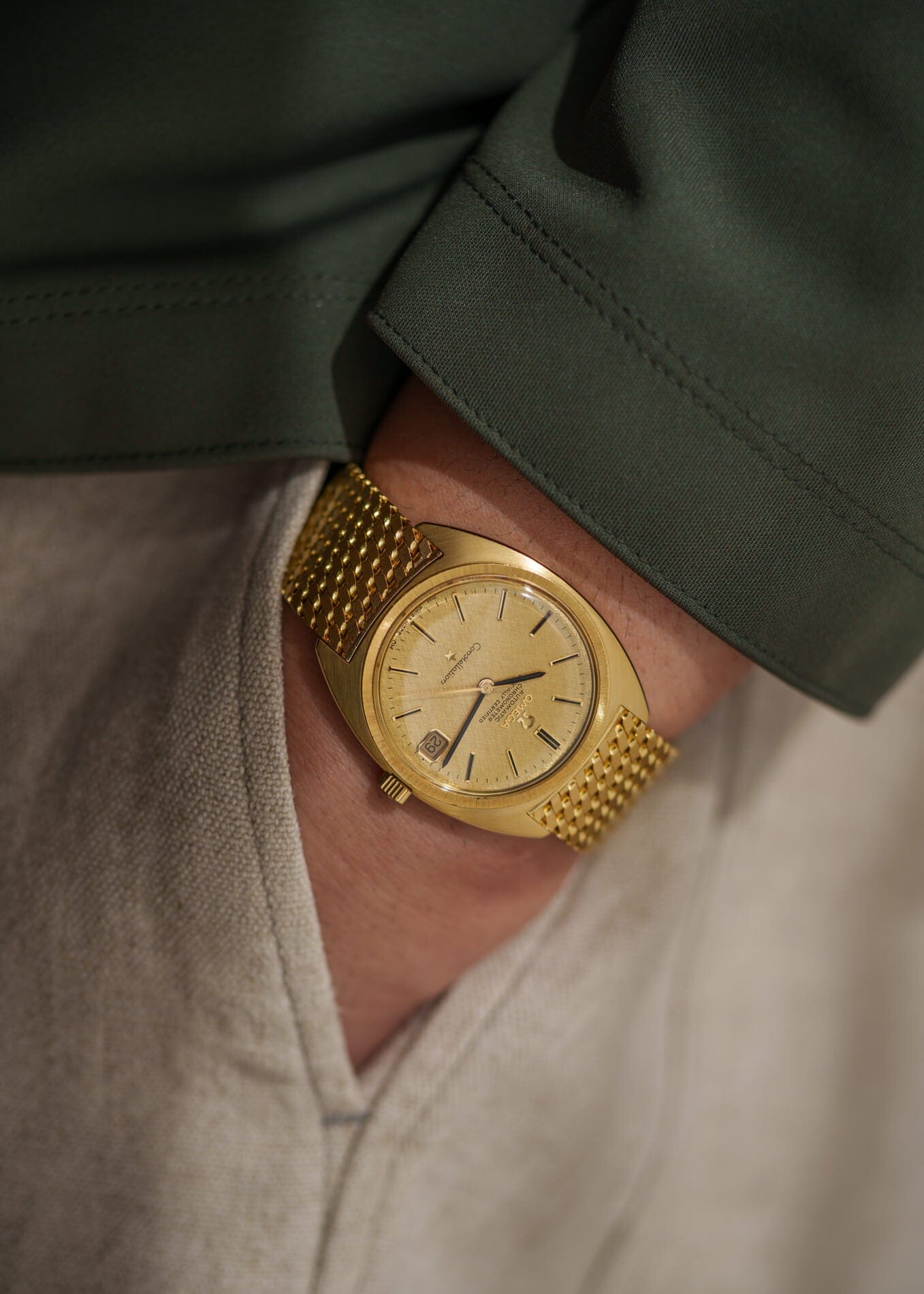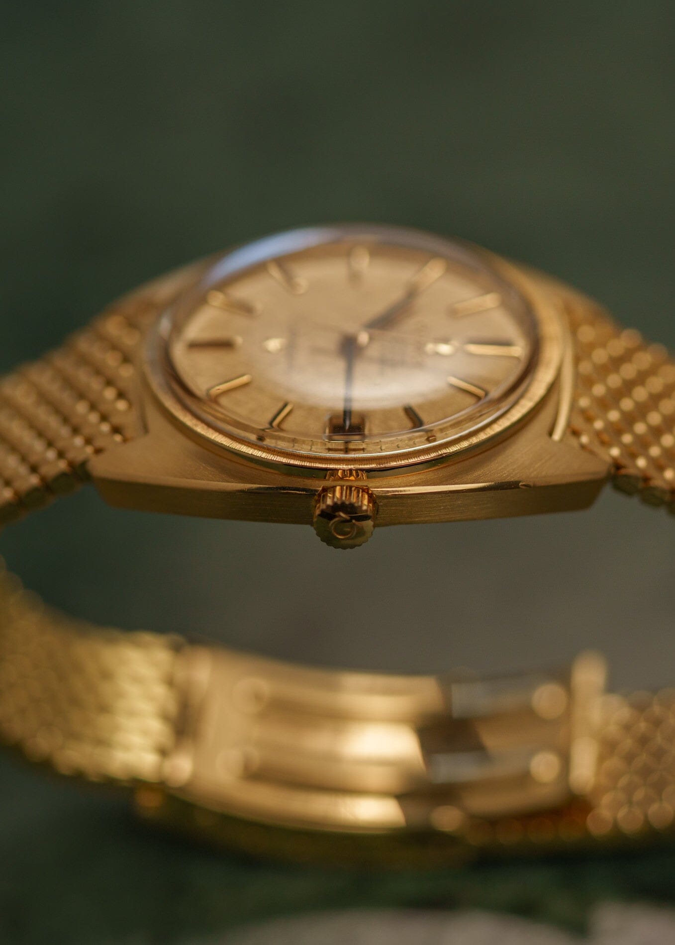 18K yellow gold Constellation watches are not particularly rare, but they are much less common when they come with genuine 18K bracelet. In addition, the case, dial, movement, and bracelet are all in excellent condition, which makes this watch a great value.