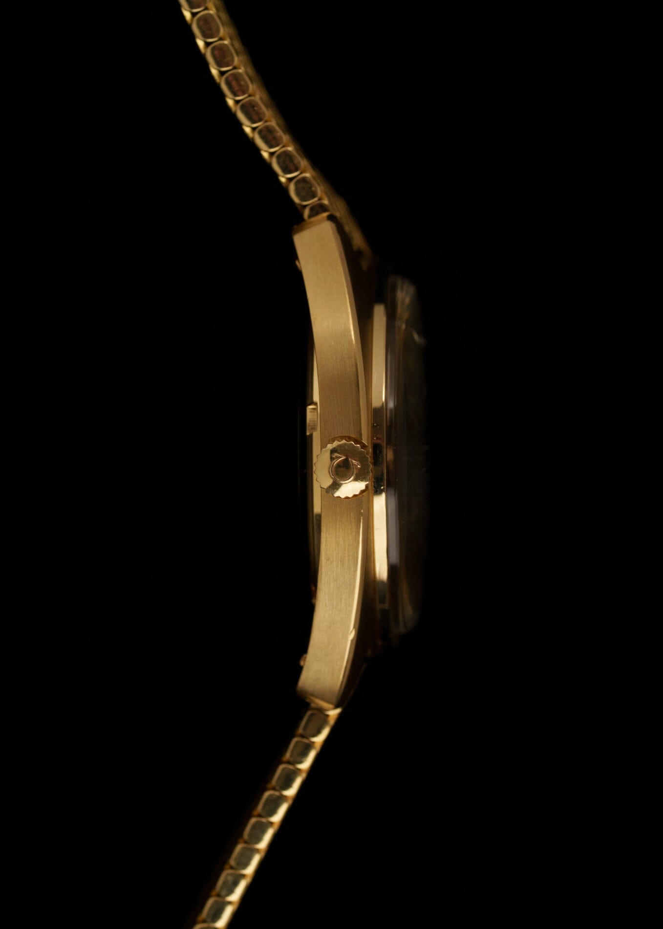 The C-line case is the early work of Gerald Genta, the watch designer who designed the Royal Oak by Audemapiget and the Nautilus by Patek Philippe.