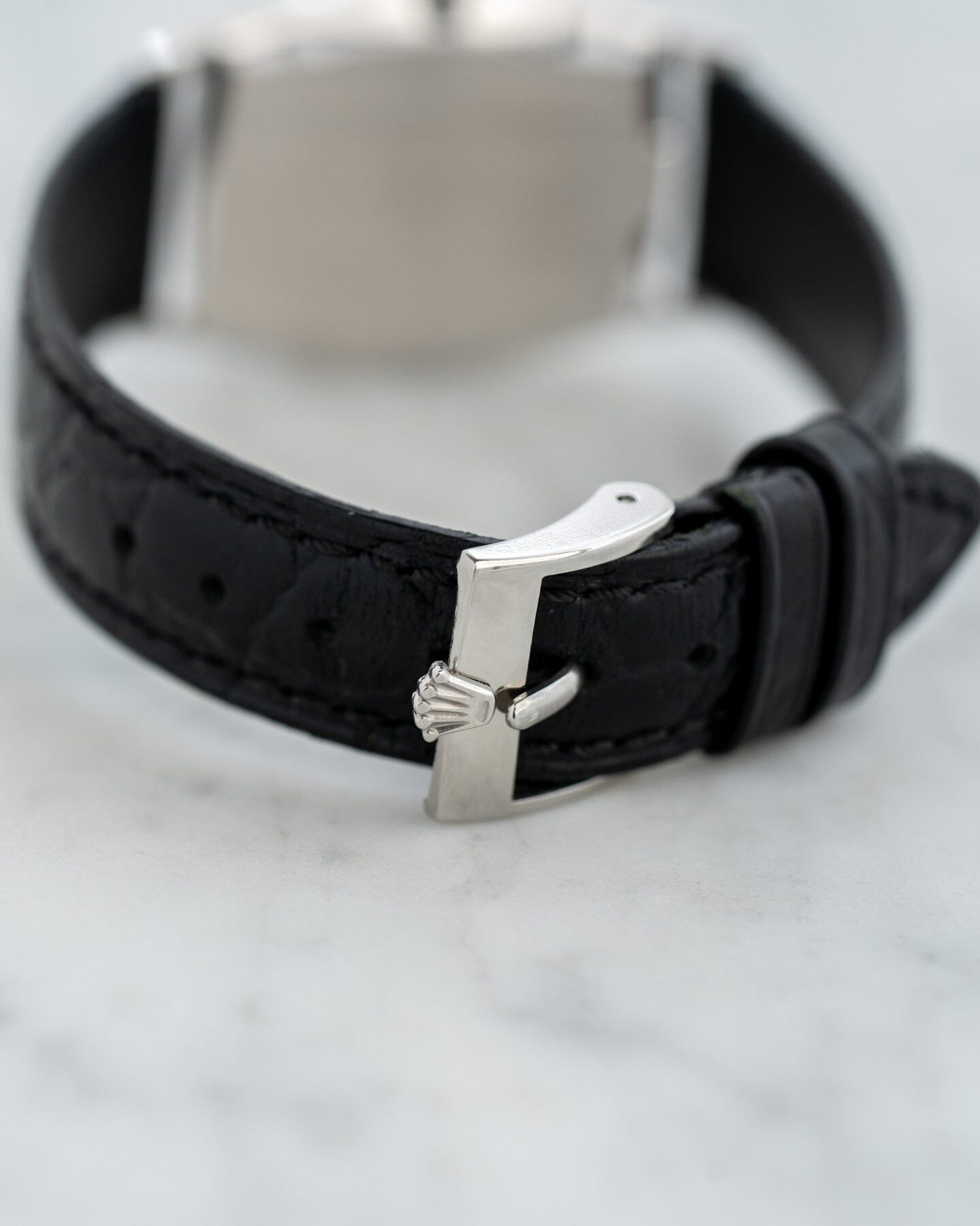 This reference 3807 is a tonneau-shaped case, which is rare for Cellini, and has a design that integrates even the lugs.