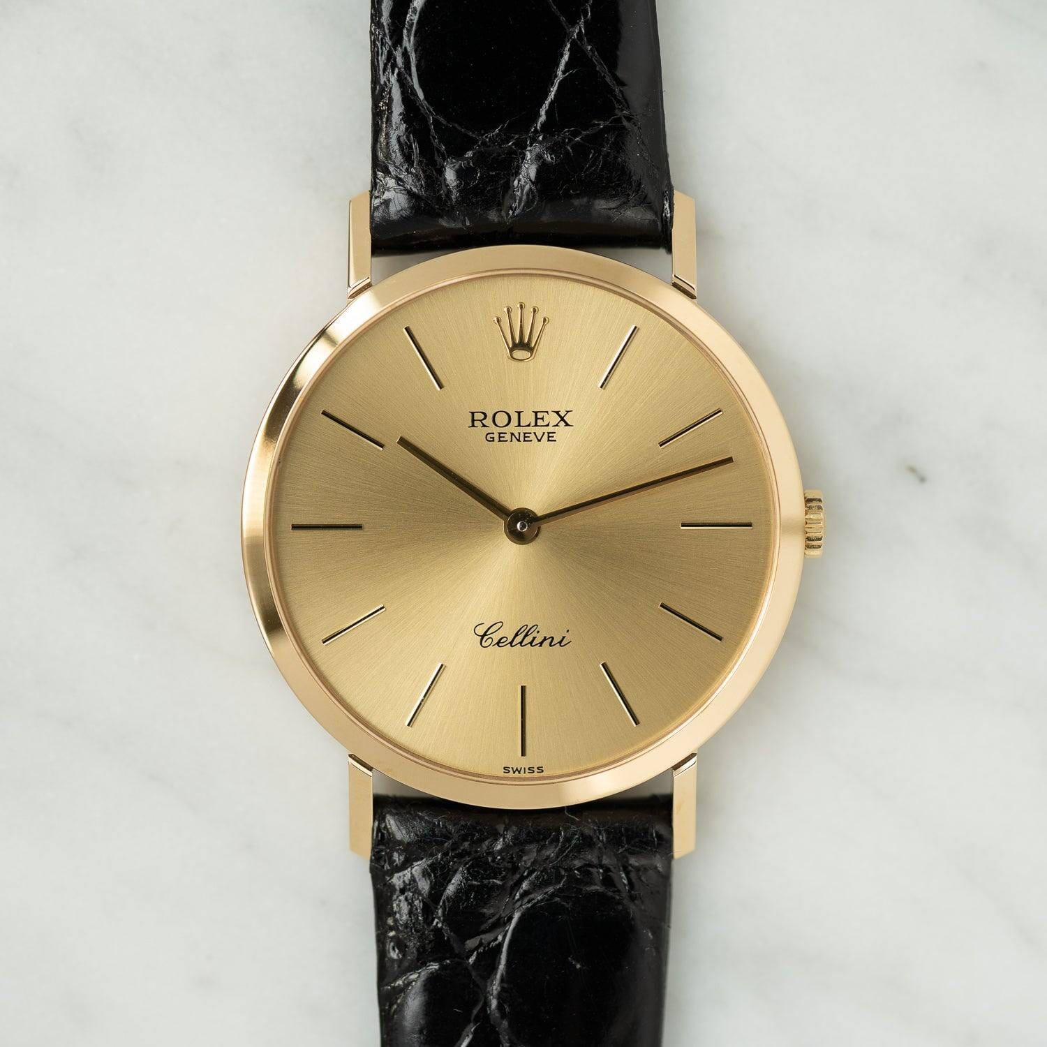 Cellini is a dress line that focuses on elegance without the Oyster case.