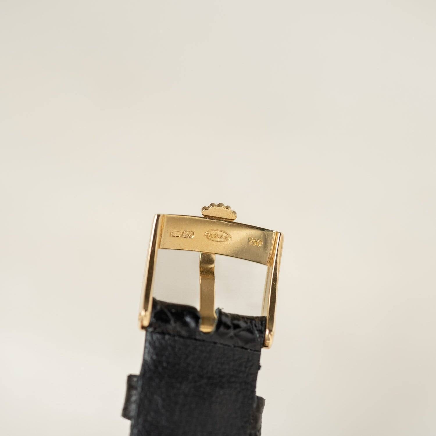 The case material is 18K yellow gold.