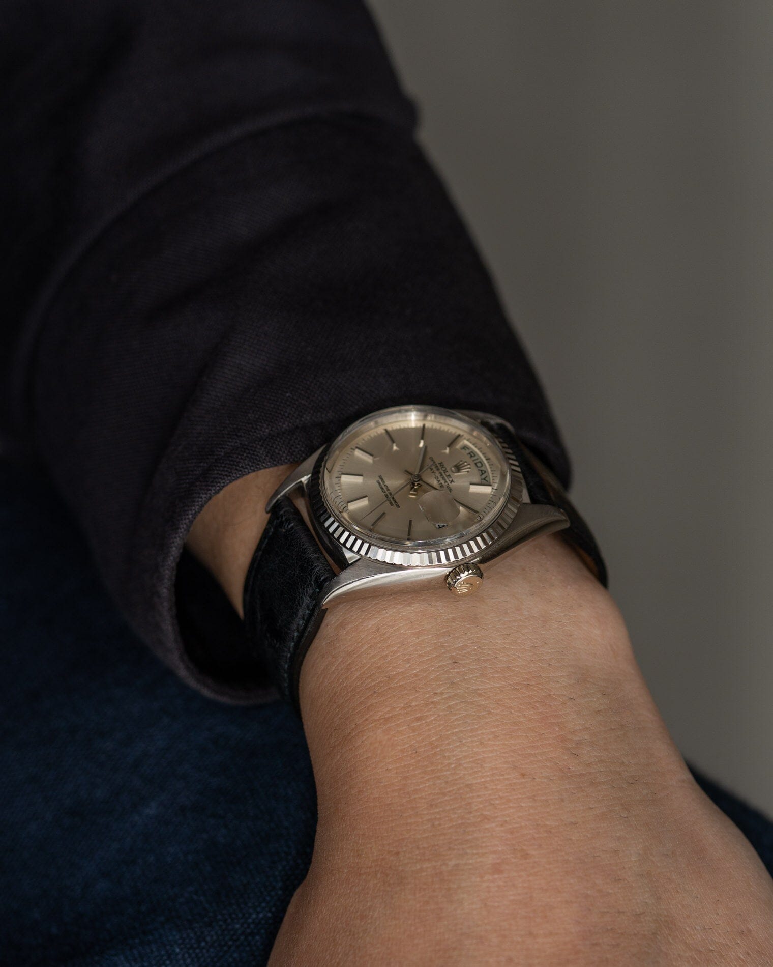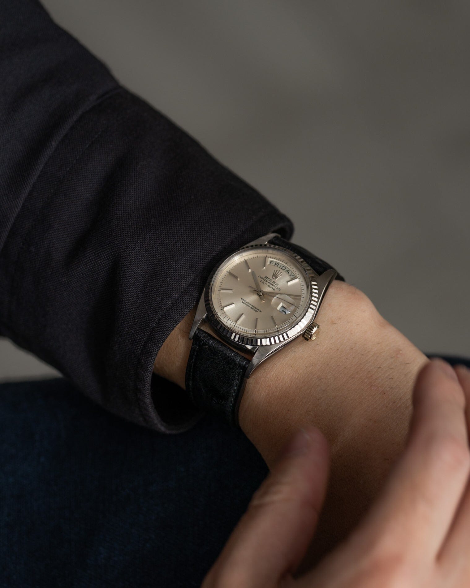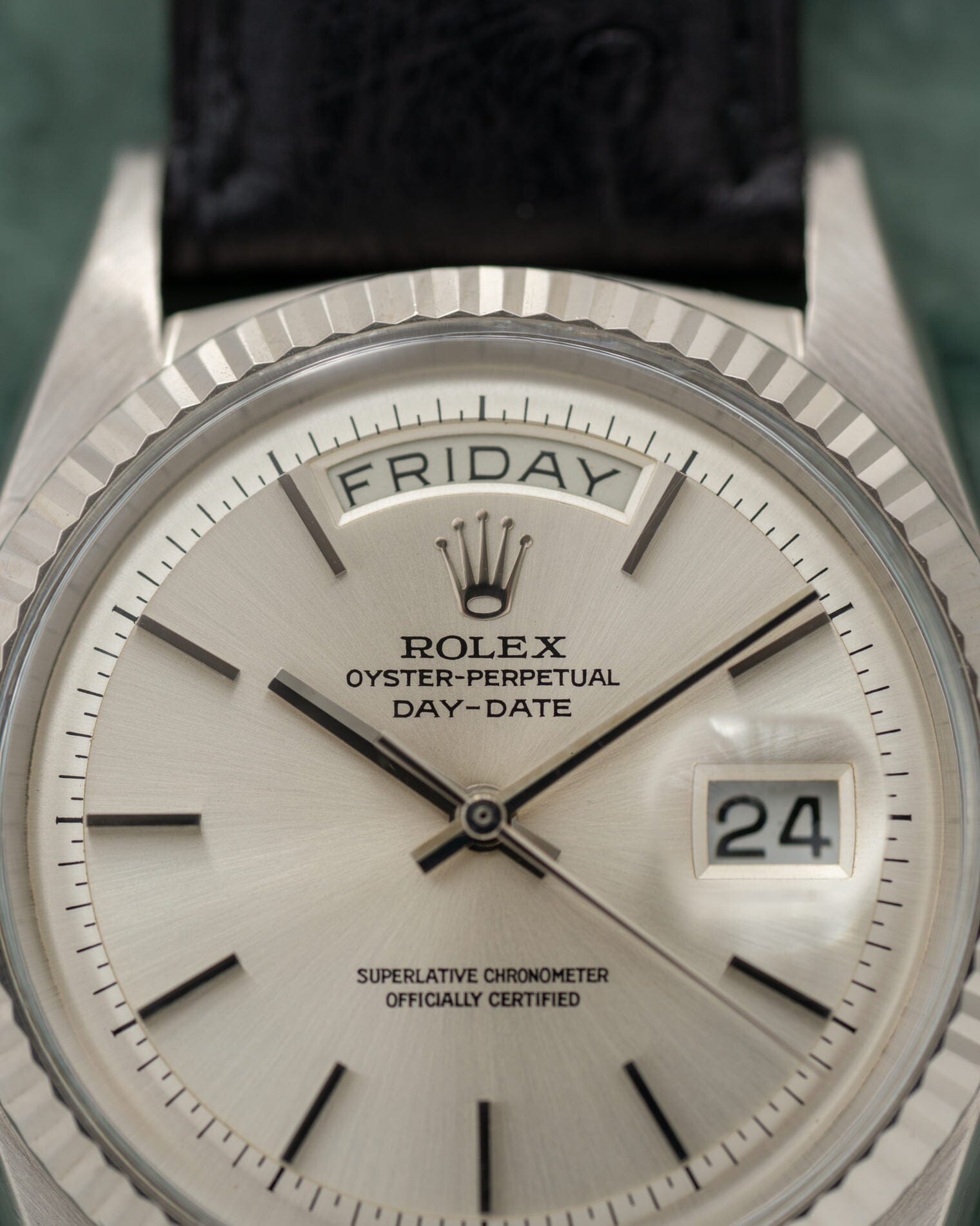 Reference 1803 is the third generation Day-Date, a vintage model produced from the 1960s to the late 1970s. This example was manufactured around 1967.