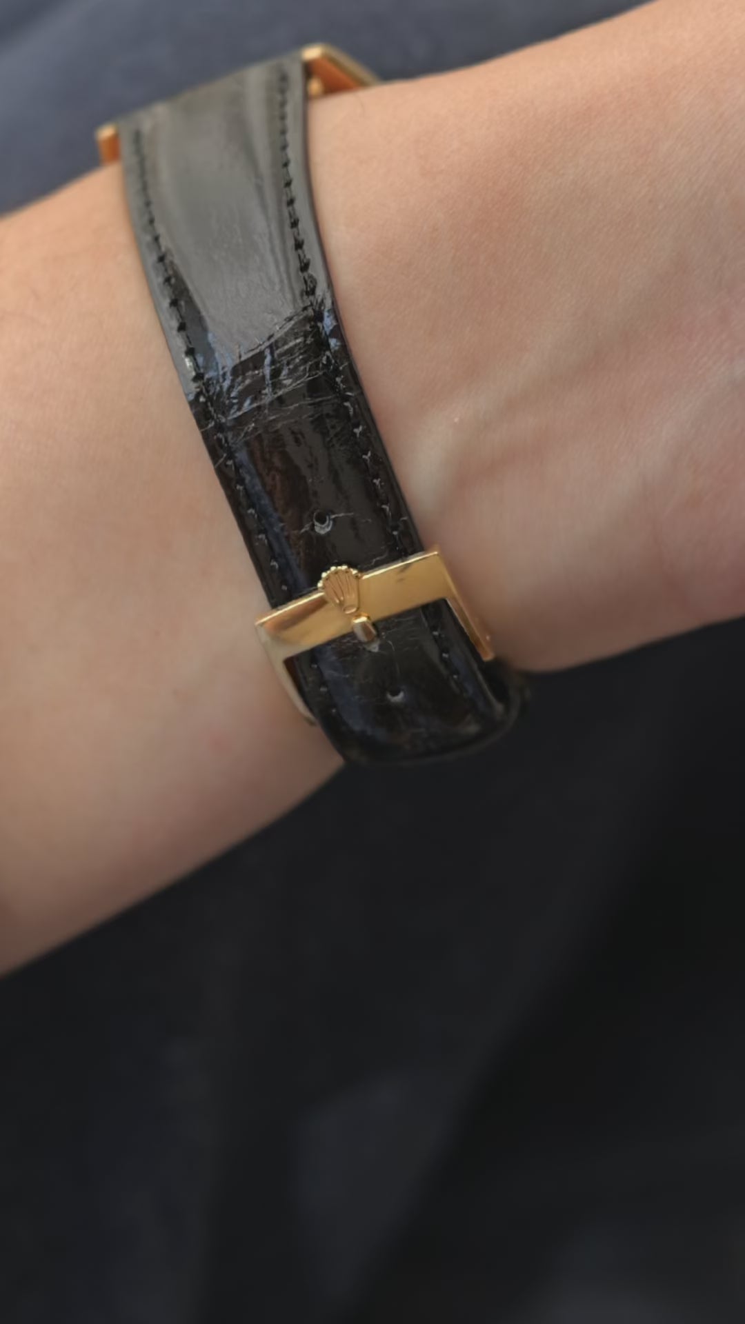 The case is made of 18K yellow gold. It has a very calm color, so it doesn't stand out too much despite being a gold watch.
