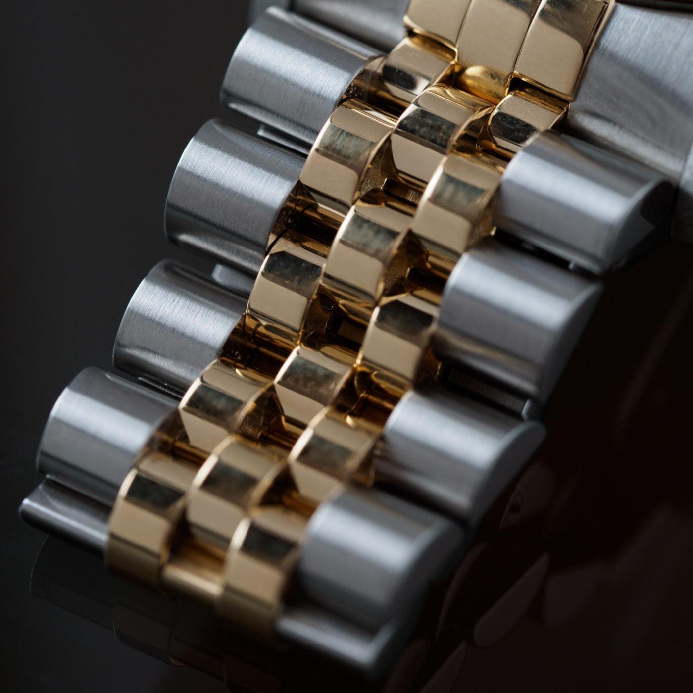 ロレックスの自動巻きと言えばデイトジャスト。ベゼルとブレスの一部がゴールドのコンビモデルです。