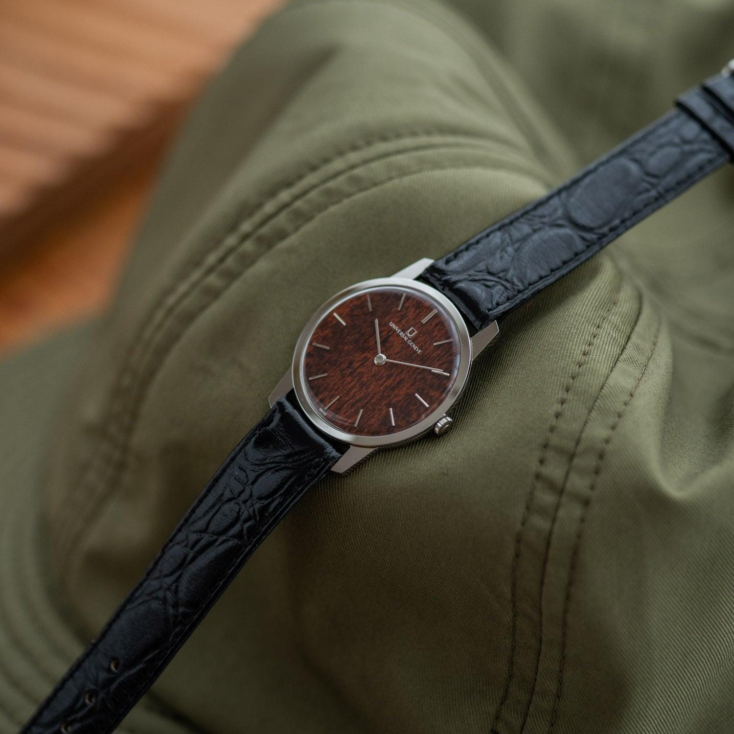 is not a flat print, but a three-dimensional dial that reproduces the unevenness of the bark, and the wood grain pattern differs depending on the watch, so it can be said to be unique.